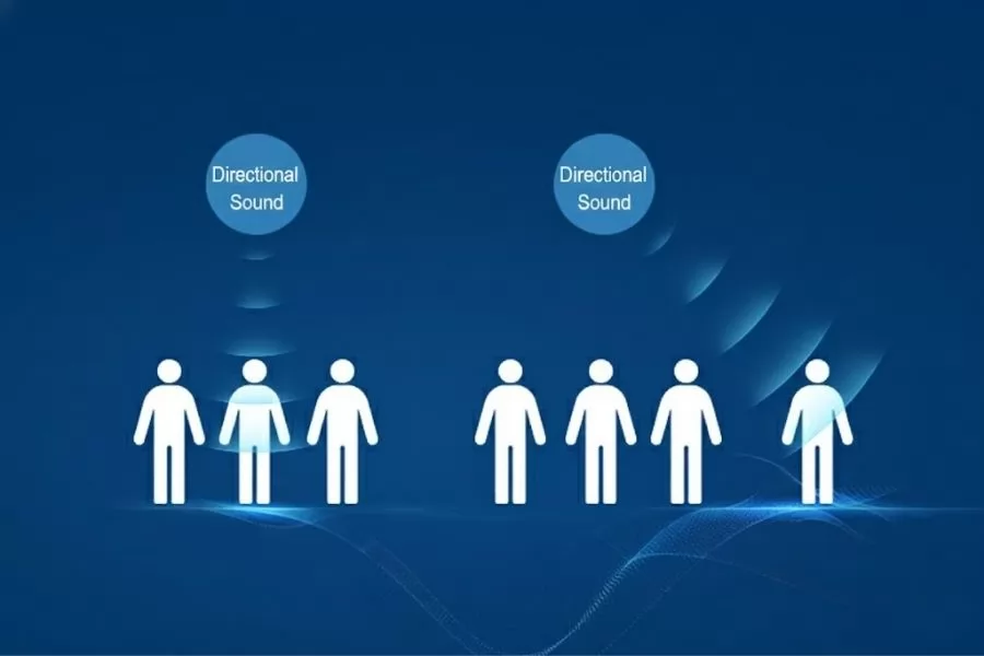 Utilizes exclusive patented directional sound technology, allowing for precise control of the sound beam, delivering audio with clarity to the target area, without adding environmental noise to the surrounding area. It is designed for outdoor noisy environments or areas that require broader coverage.
