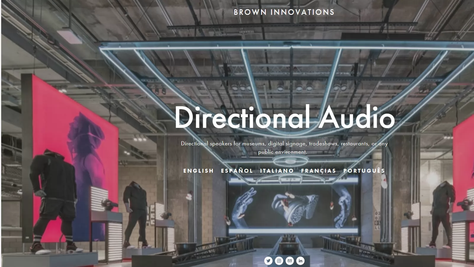 Brown Innovations, a pioneer in sound focusing technologies since 1993, has been at the forefront of innovation in directional speakers. Our talented engineers, based in Boston, Massachusetts, develop large-scale custom systems for indoor and outdoor use. From the Sound Dome Localizer to our SonicBeam to our Directional Subwoofer speaker line, we offer complete sound focusing solutions for any environment or application. As a leading Directional Speaker Manufacturer, we are committed to providing the highest quality technologies possible. Our track record speaks for itself with almost 20 years of satisfied customers and maintenance-free products. From digital signage screens in Heathrow Airport to museum displays at the Rock and Roll Hall of Fame; audio installations at Sao Paolo's Art Biennial to outdoor information kiosks in Helsinki; from restaurant seating areas to quiet library and gallery settings, our speakers are found wherever high-quality audio needs to be controlled.